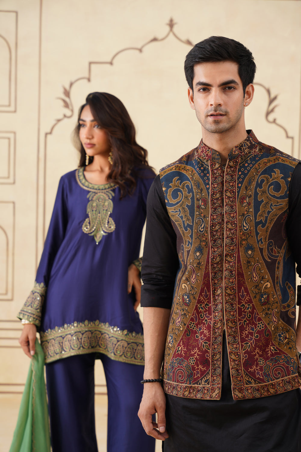 Deep Magenta Shirt with Brocade Pants