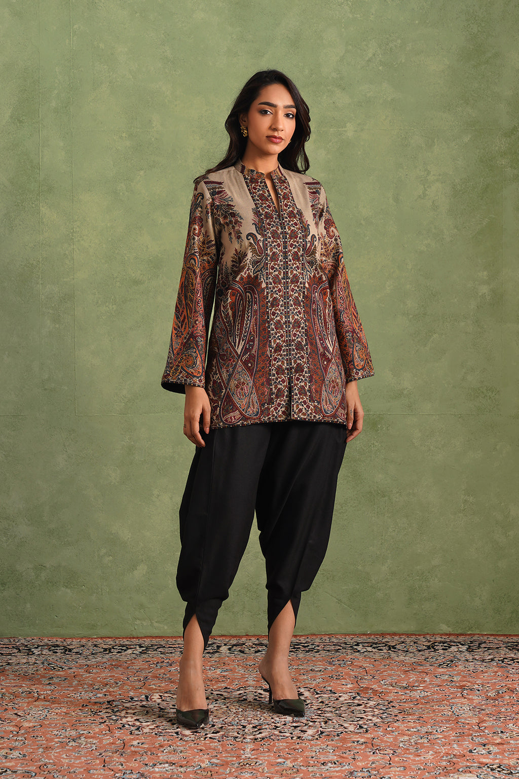 The rich silhouette of the dhoti adds depth and elegance, while the comfortable fit ensures you can wear it with ease. Make a statement with this unique ensemble and experience the perfect blend of classic style and contemporary charm. Enhance your ethnic wardrobe today with this exquisite dhoti set!